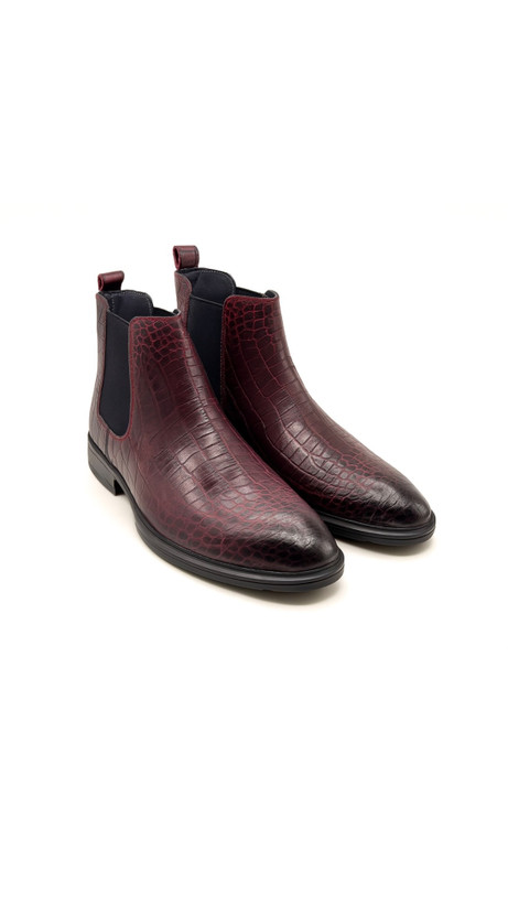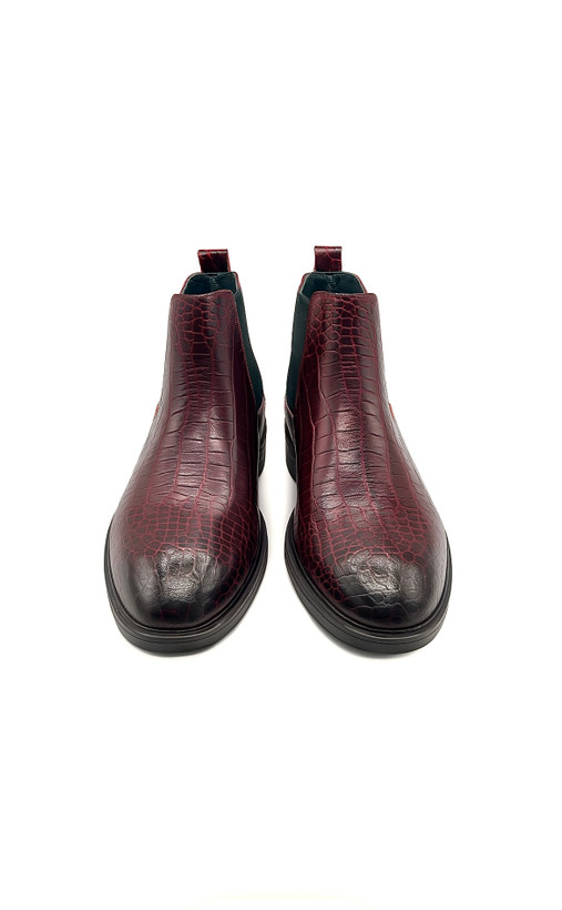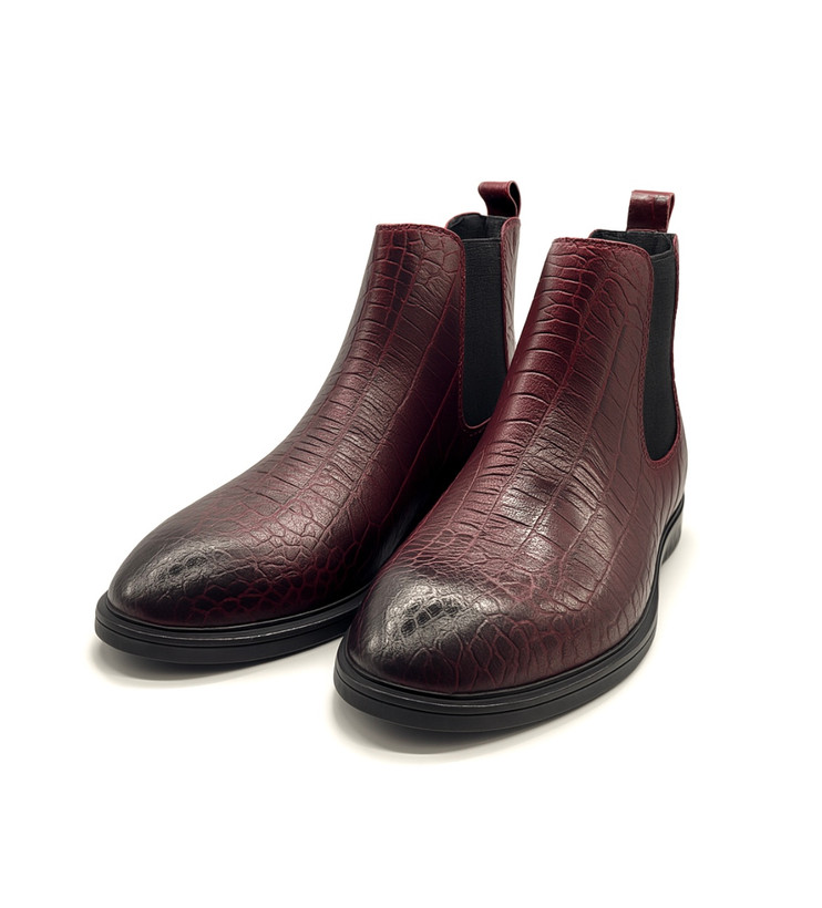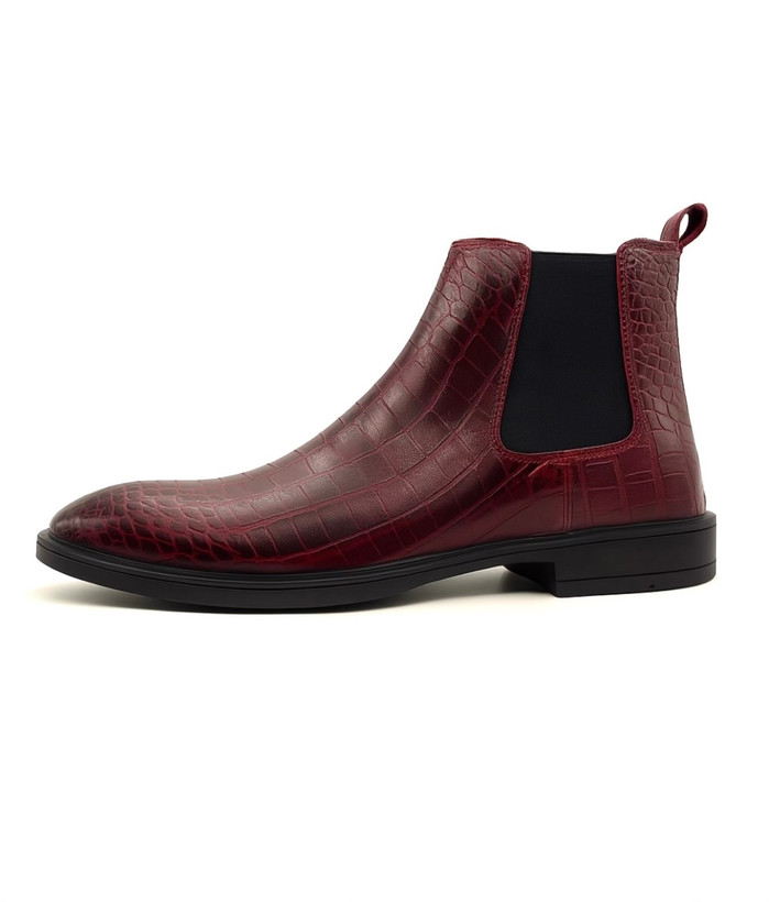 نیمبوت مردانه ونتو مدل چلسی جنس چرم کرکودیلی زرشکی