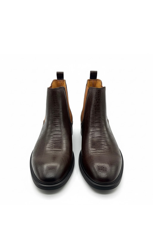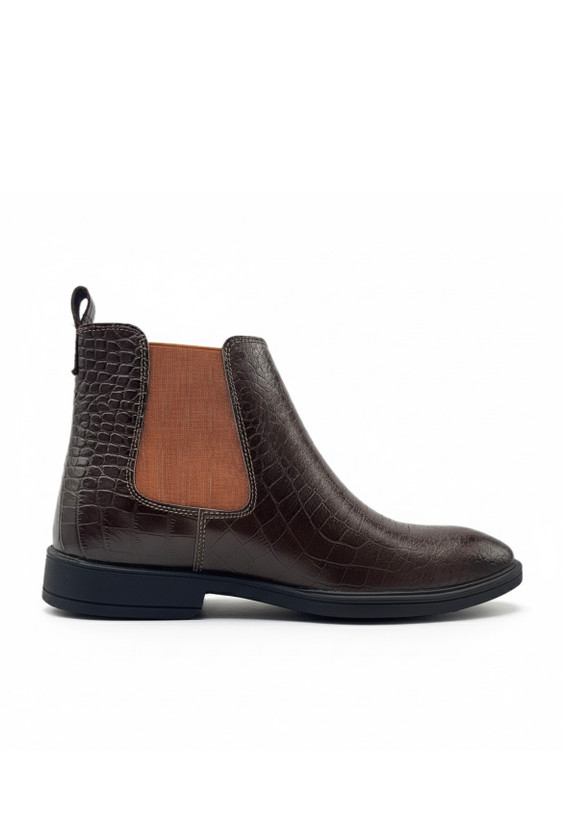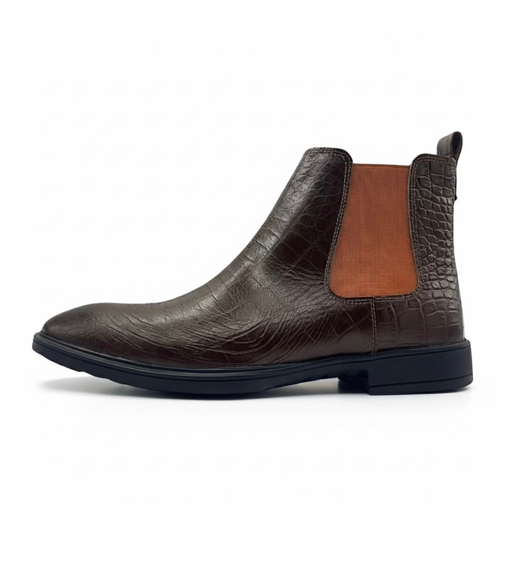 نیمبوت مردانه ونتو مدل چلسی جنس چرم کرکودیلی قهوهای تیره
