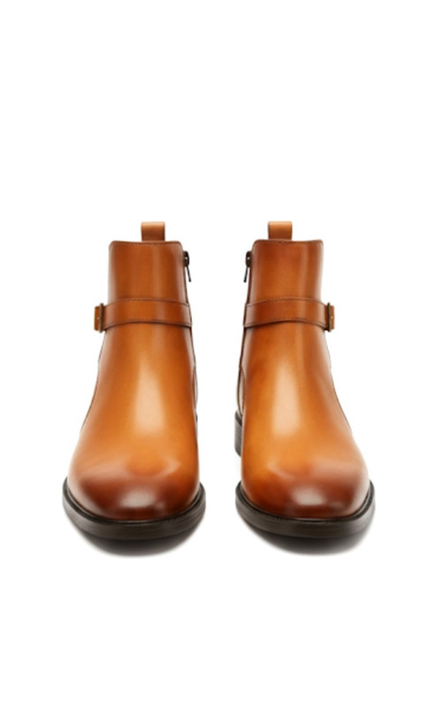 بوت مردانه ونتو مدل دوالباکل سگکدار بغل زیپ جنس چرم شبرو عسلی