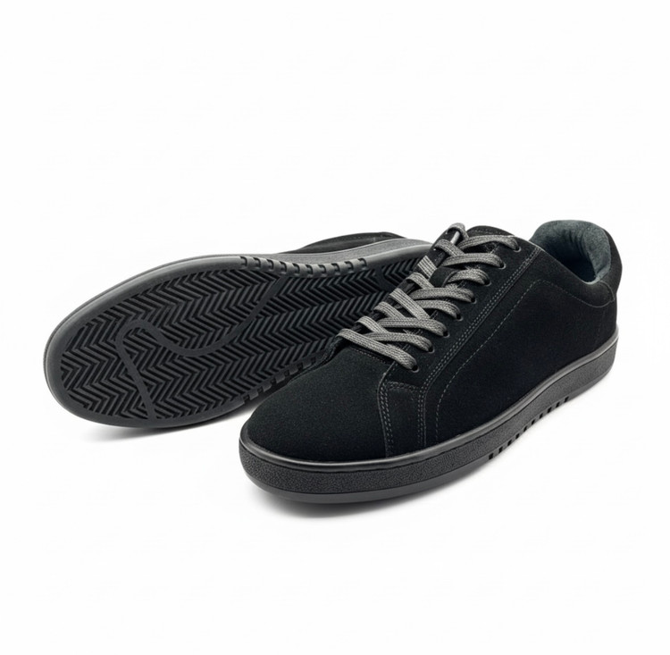 Men's vans shoe with a minimalist design inspired by classic European style. Features a natural cowhide leather upper with a mat surface, a breathable goatskin lining, and a durable rubber outsole. Replaceable insole, reinforced with industrial adhesive and stitching. Suitable for everyday, formal, and semi-formal wear.
