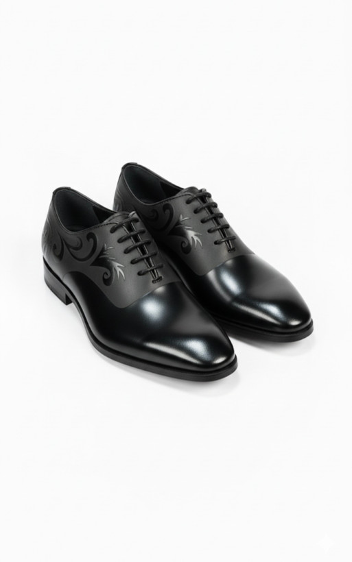 کفش آکسفورد گلدار چرم شبرو مشکی