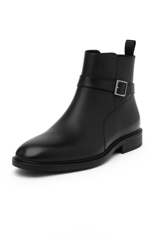 بوت مردانه ونتو مدل دوالباکل سگکدار بغل زیپ جنس چرم شبرو مشکی