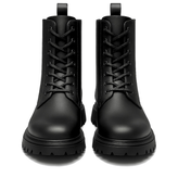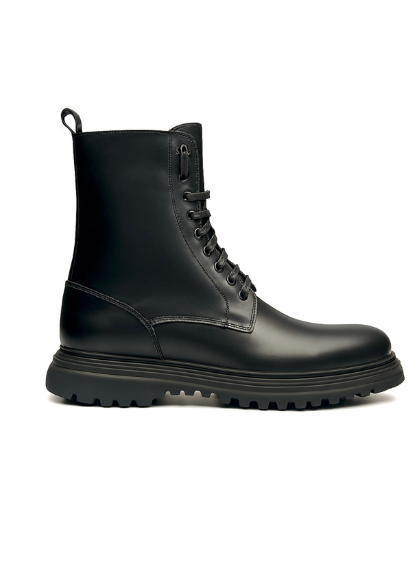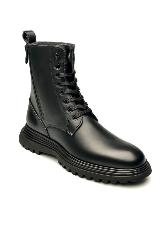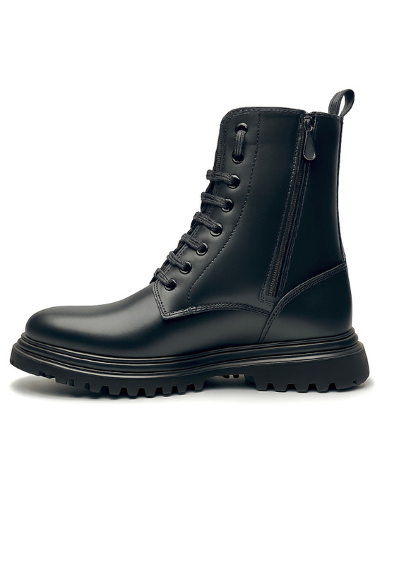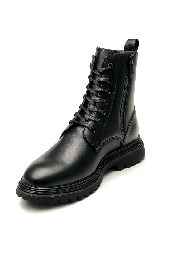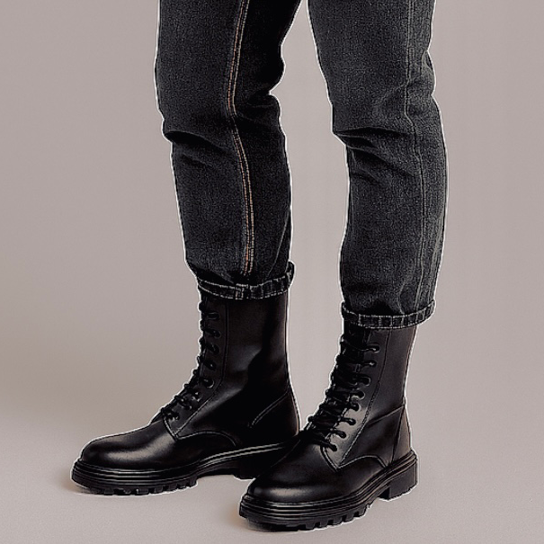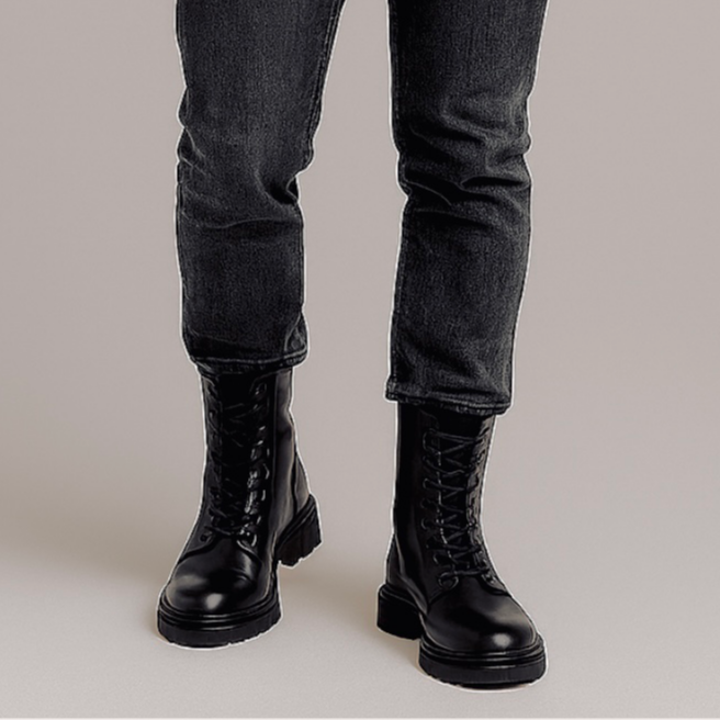 طراحی این مدل با الهام از بوتهای **Combat** انجام شده و ترکیب ساق بلند با بندهای مقاوم، حس استحکام و امنیت را به پا منتقل میکند. فرم استاندارد بوت باعث فیت مناسب پا شده و در عین حال ظاهر آن را منظم و حرفهای نگه میدارد. این مدل بهراحتی با شلوار جین، اسلش و استایلهای تیره هماهنگ میشود.