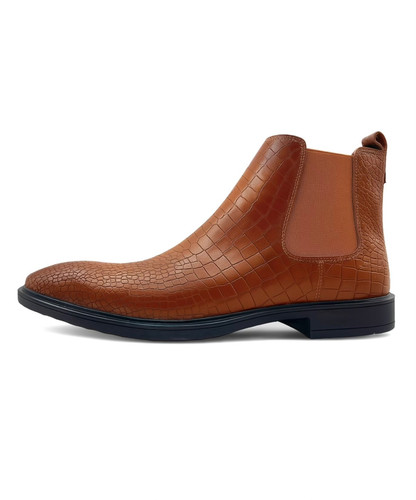 نیمبوت مردانه ونتو مدل چلسی جنس چرم کرکودیلی عسلی